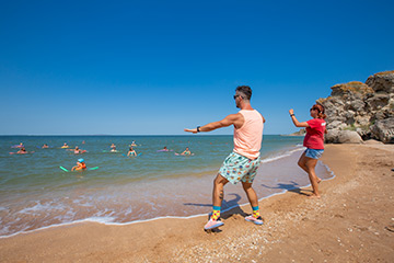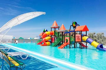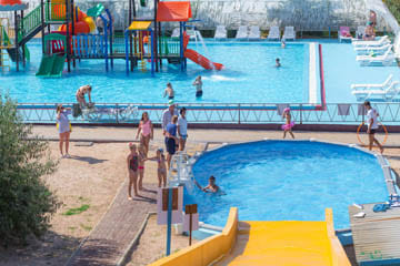 В «АзовЛенде» предусмотрено абсолютно все для комфортного и интересного семейного отдыха. 3 аквазоны - замечательный детский аквапарк, водная горка для всей семьи, широкая программа анимации, конкурсы и дискотеки, захватывающие экскурсионные путешествия, бескрайние песчаные пляжи, завораживающее прозрачное море – все это доступно тем, кто запланировал отдых в Крыму 2025.