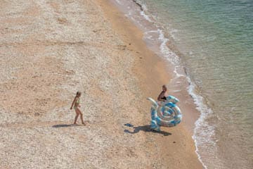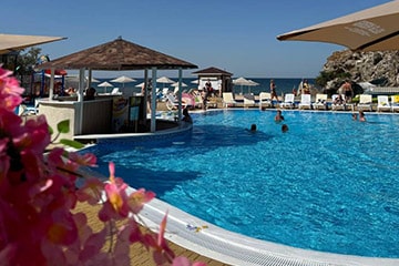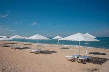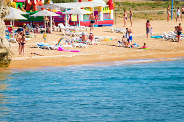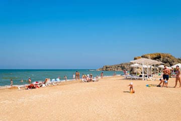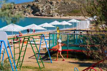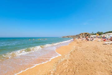 Роскошный оборудованный пляж находится всего в 30 метрах от корпусов. Пляж песчаный с плавным входом в море расположен в окружении двух бухт.
