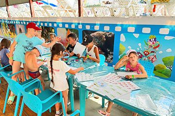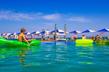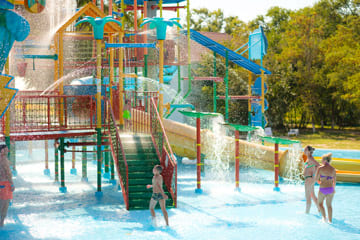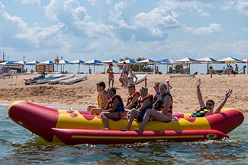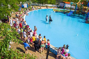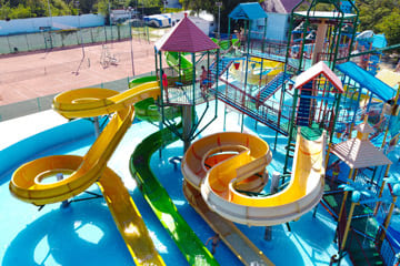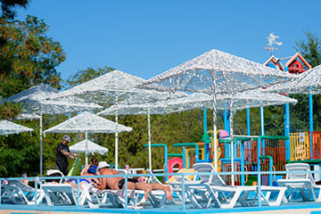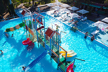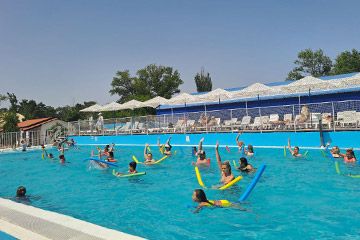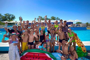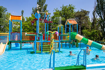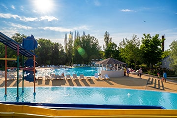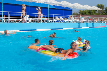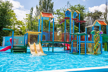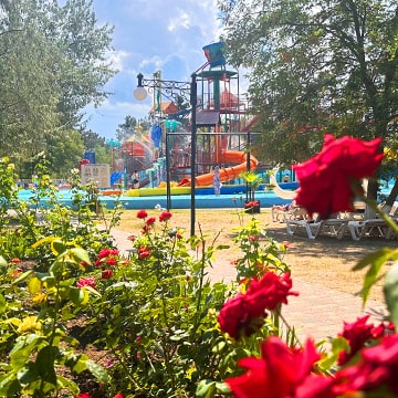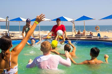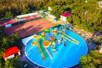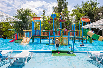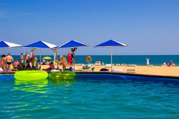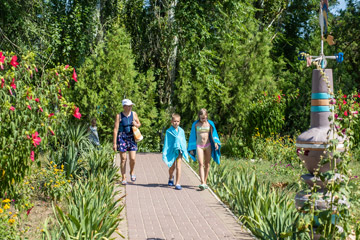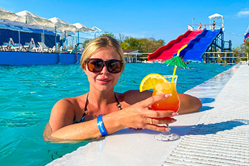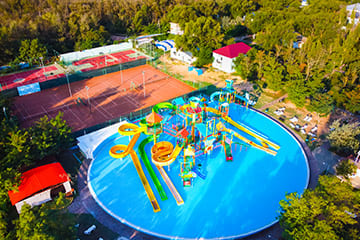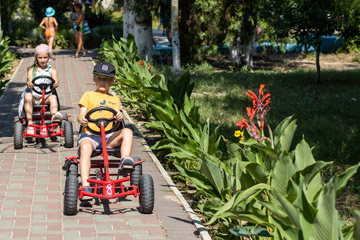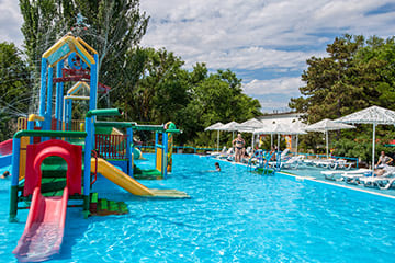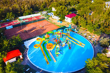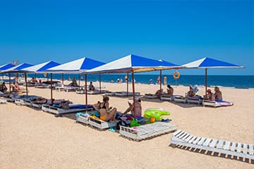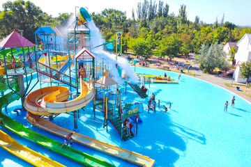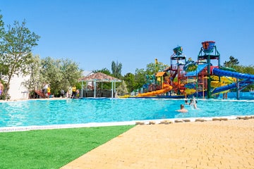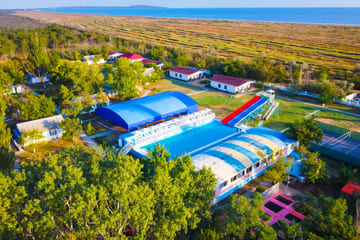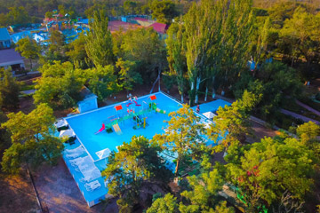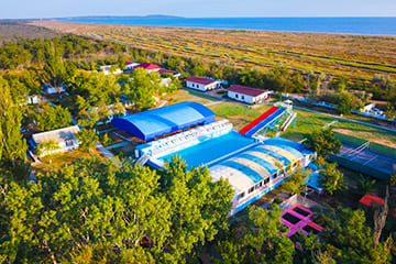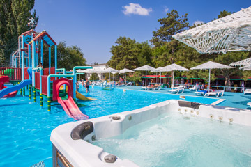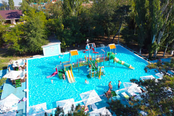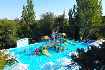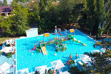 К услугам отдыхающих 6 аквазон: аквапарки и бассейны, пляж протяженностью 1 км, детские и спортивные площадки, ухоженная территория с инфраструктурой, которой нет равных на южном побережье Азовского моря.