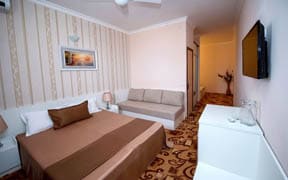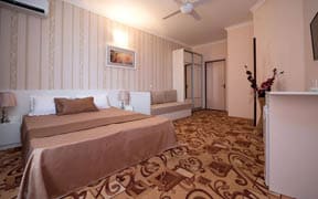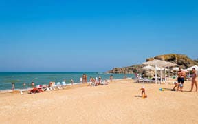 Роскошный оборудованный пляж находится всего в 30 метрах от корпусов. Пляж песчаный, вход в море плавный