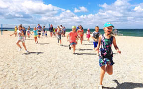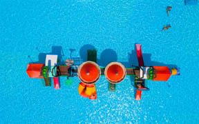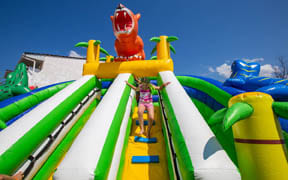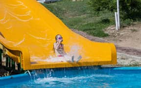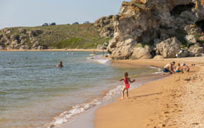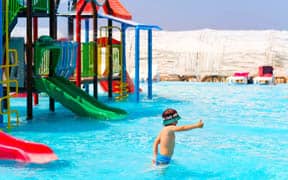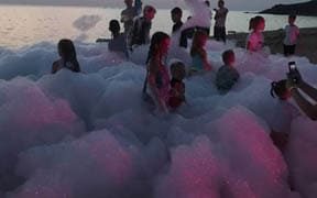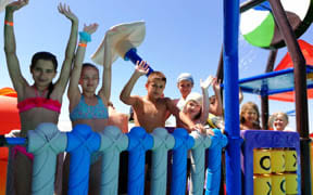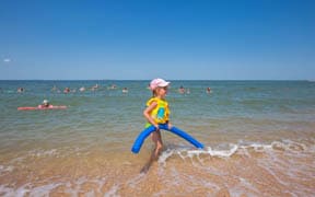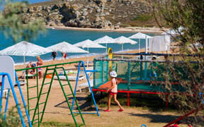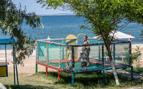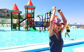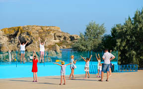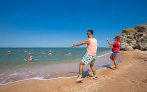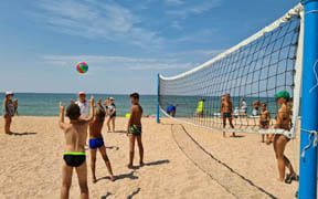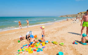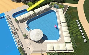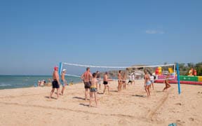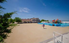 На пляже: детский аквапарк с подогревом воды, кафе, анимация, пляжный волейбол, детский надувной городок