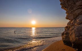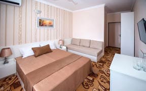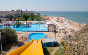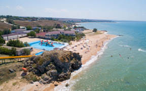 Уединенная территория отеля находится в окружении двух бухт, а Азовское море в этих местах славится своей чистотой и прозрачностью. Отель расположен на легендарных генеральских пляжах.