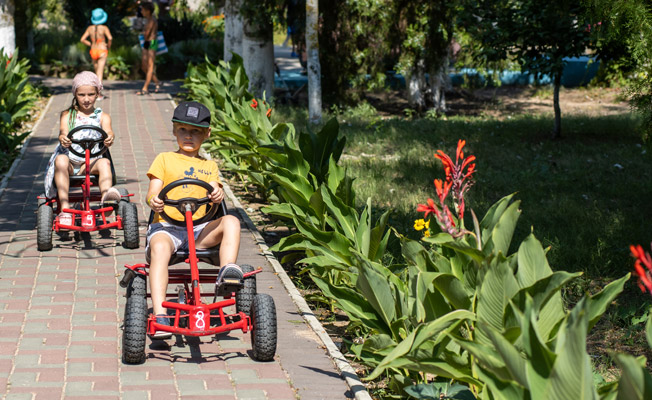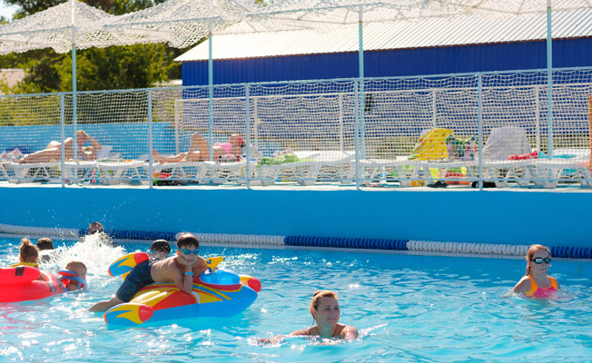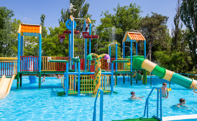 Инфраструктура комплекса располагает всем для интересного отдыха: 2 аквапарка на территории, 2 бассейна с подогревом воды, спортивные и детские площадки, игровая комната, батуты, надувной городок и многое другое.