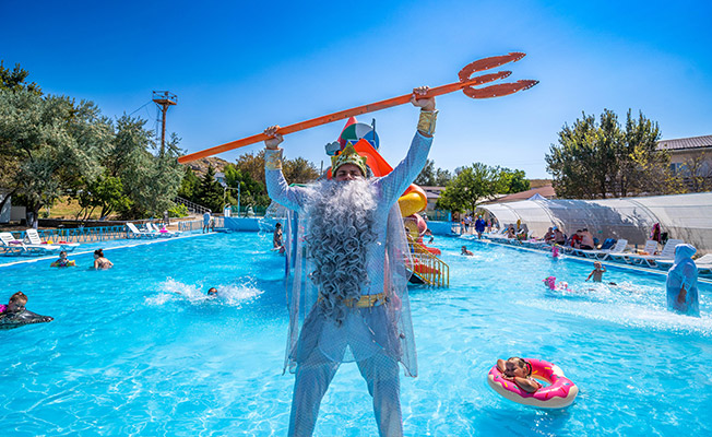 Для вас в семейном отеле «АзовЛенд» каждую неделю – Приключения Нептуна и пенная вечеринка «Море пены» *, а также Фестиваль красок Холи - «Наше яркое лето» *
