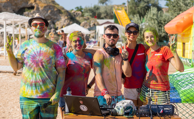 - Краски холи на пляже.